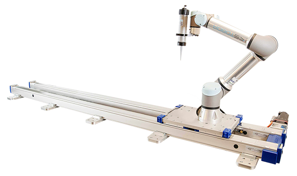 A 7th axis for robots refers to an additional degree of freedom when it is mounted on a linear guide. Allowing the robot to move in a straight line horizontally or while inverted, the guide extends the operating range beyond the robot’s standard 6-axis capabilities. The 7th axis significantly expands the robot’s functionality and productivity when: