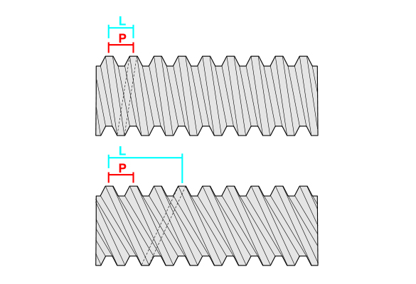 節(jié)距是絲杠溝槽間的距離,通常用于英制產(chǎn)品,單位為每英寸螺紋數(shù)。導(dǎo)程是絲杠每旋轉(zhuǎn)一周螺母直線運(yùn)動(dòng)的距離,通常是滾珠絲杠的指定方式。對(duì)于單頭絲杠,節(jié)距與導(dǎo)程相等。對(duì)于多頭絲杠,導(dǎo)程等于節(jié)距乘以頭數(shù)。